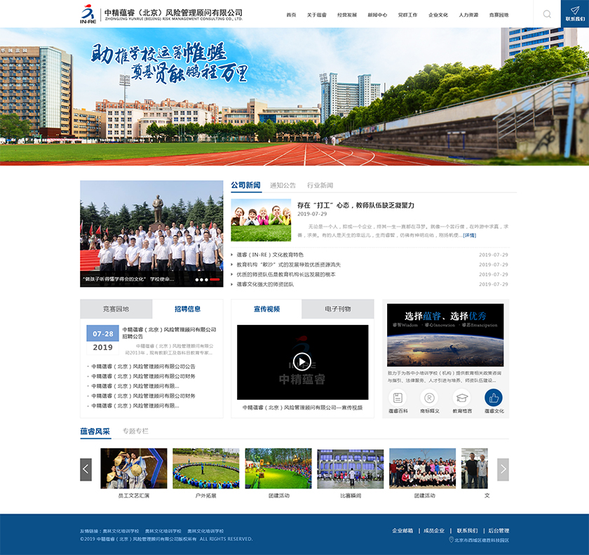 Project Description 中精蕴睿(北京)风险管理顾问有限公司2013年,现有教职工及各科目教育专家80多人,致力于为各中小培训学校(机构) 提供教育相关政策咨询与指引、法律服务、人才引进与培养、师资队伍建设与培训、教学教研与学科创新、市场营销企划、文化 理念塑造与品牌输出的专业化教育管理全方位的综合服务。 Official website address 清远http://in-re.com/ I want to share